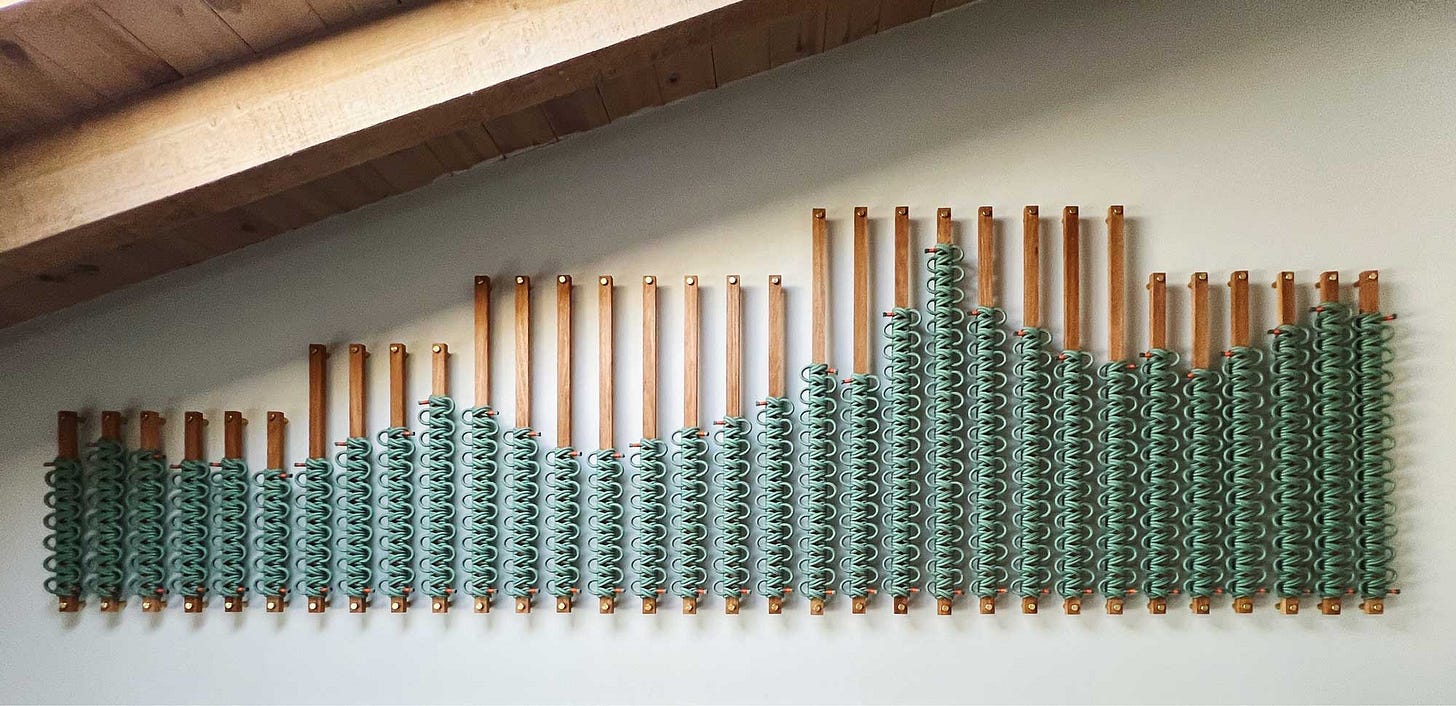Her work now fills airports and office towers—giant, flowing sculptures of rope and line that take up undeniable space in environments usually dominated by glass, steel, and noise.